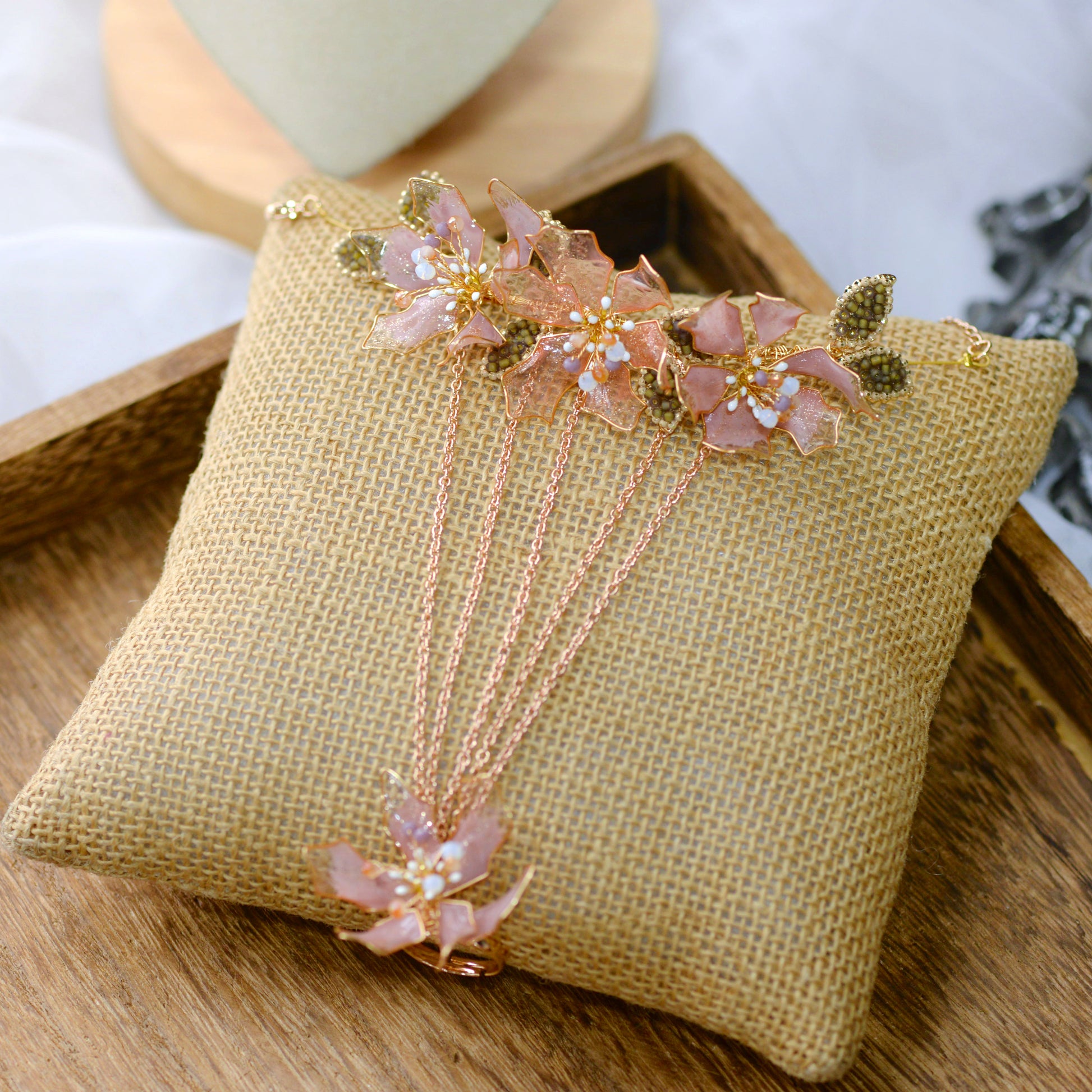 Featuring a string of blooming pink flowers with hints of golden, this hand harness will make you swoon. It’s delicate, dainty and goes perfectly with your dresses or Indian wear. We love a versatile piece and this one is on top of our list.