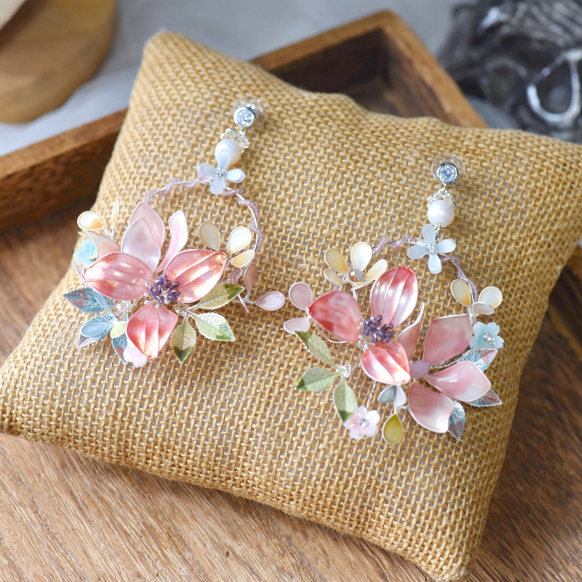 Delicate blooms crafted in soft pastel hues like baby pink, light blue & pale yellow dance from your ears, adding a touch of romance to your outfit. Perfect for a day out or a special occasion, these earrings are sure to bring a smile to your face and compliments your way.