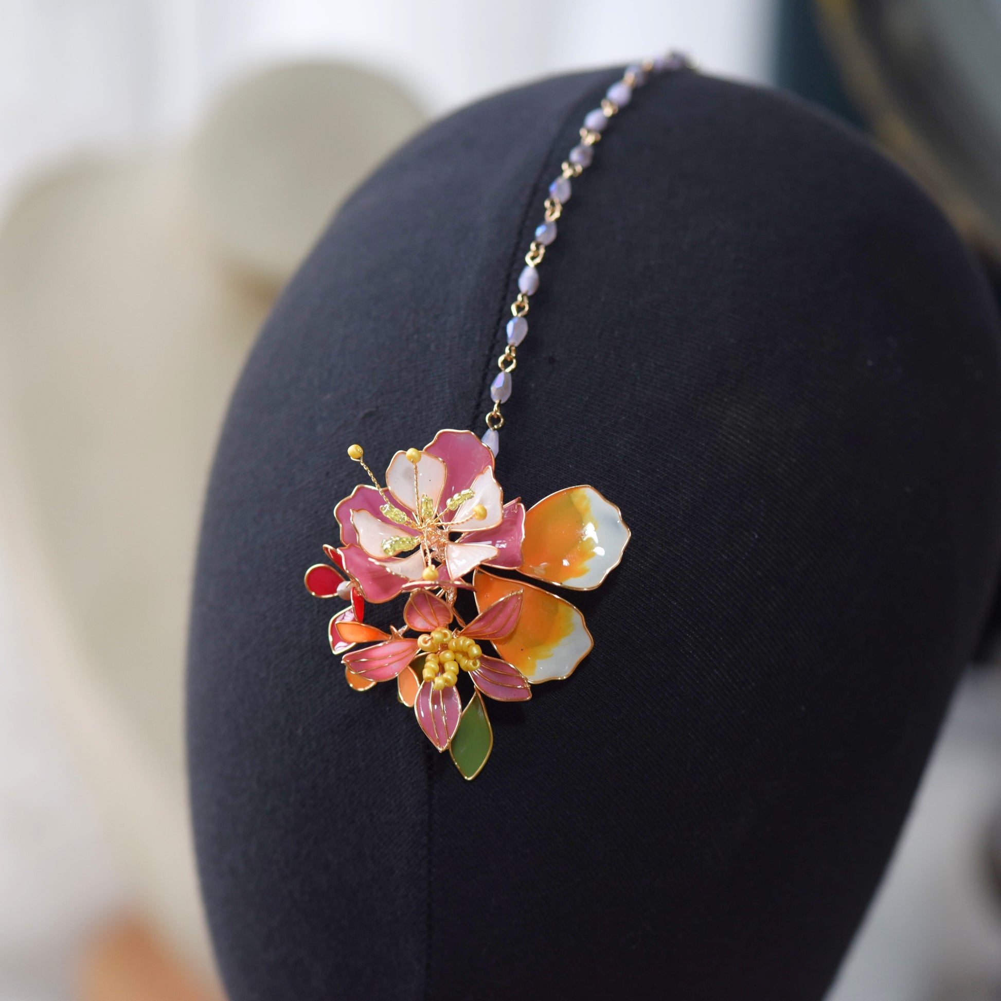 Handcrafted Detailing – Resin petals, glass beads, and delicate wirework